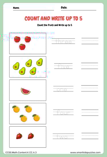 Tập đếm đến 5 - viết bằng số và bằng chữ