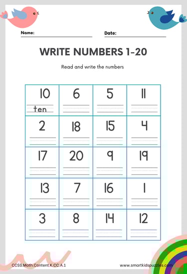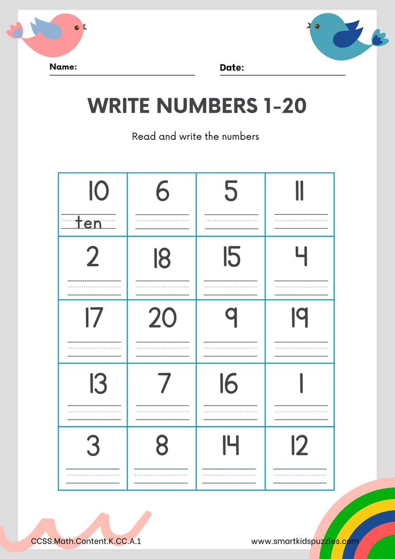 Tập viết từ 1 đến 20 bằng chữ tiếng anh